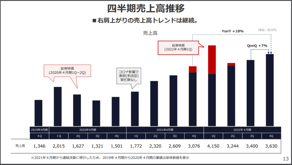 コスメECは広告規制で弱いとのことだが、Q3 > Q4 で少し増加している印象。戻してきているのか?
