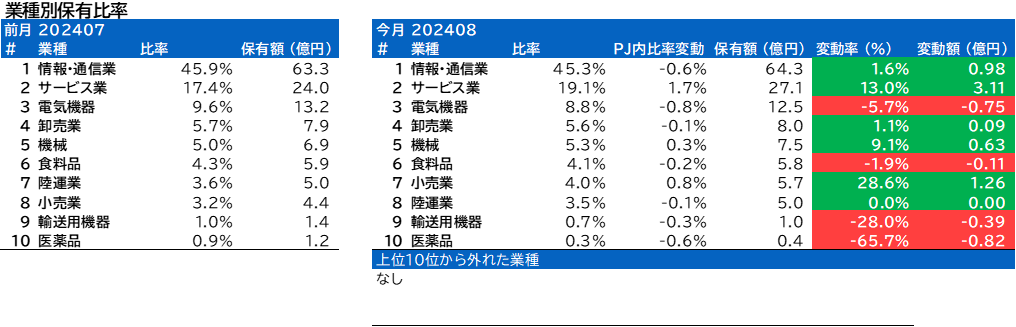 業種別保有比率に変動がありました。