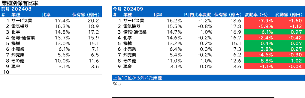 その他の保有比率はPF内8位で変わりませんでしたが業種指数の変動以上に大きく上昇しました。