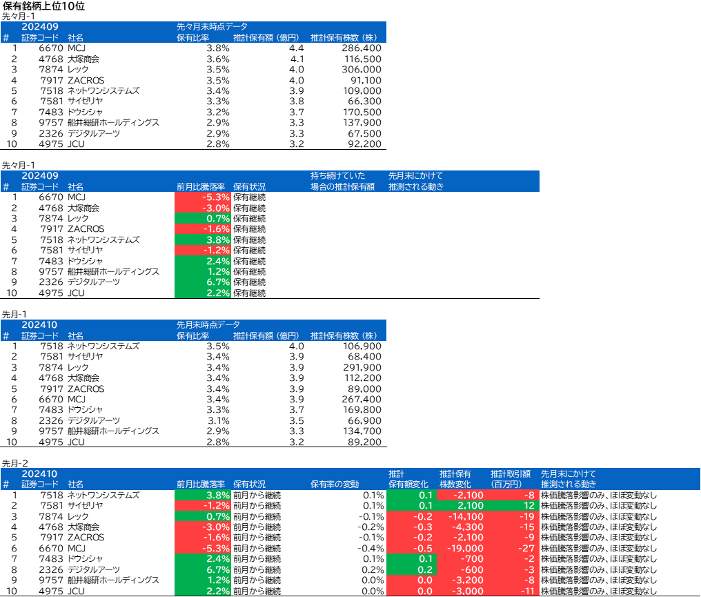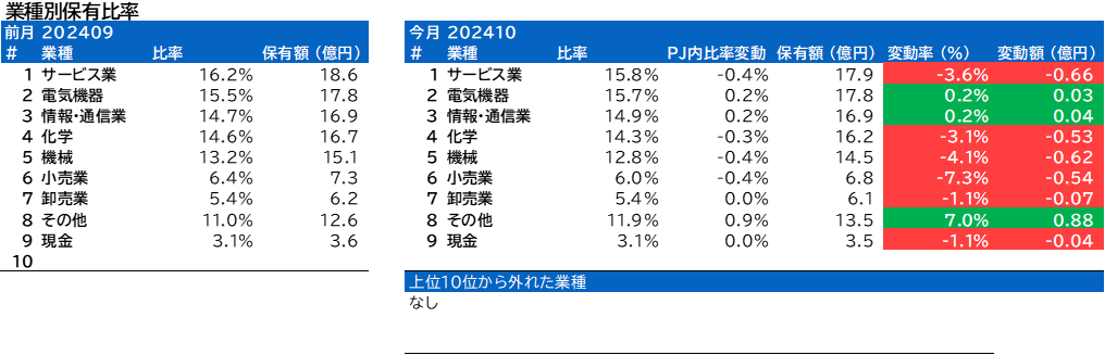 その他の保有比率はPF内8位で変わりませんでしたが業種指数の変動以上に大きく上昇しました。