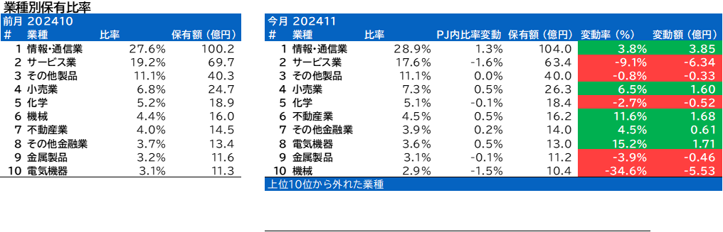 業種別保有比率に変動がありました。
