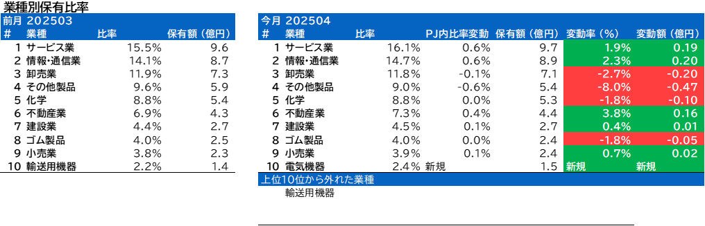 業種別保有比率に変動がありました。