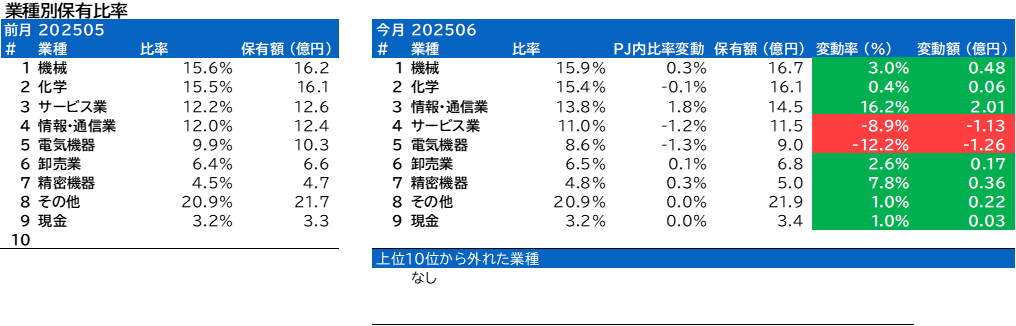 業種別保有比率に変動がありました。