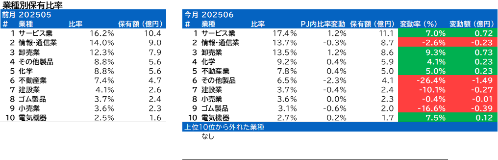 小売業の保有比率がPF内9位からPF内8位に上がりました。