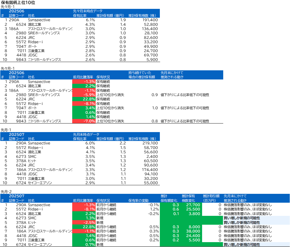 今月の保有上位10銘柄には新しくヒットが入りました。新規に購入された結果上位に入ったと思われます。