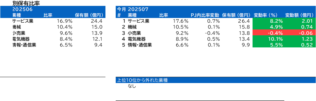 業種別保有比率に変動はありません