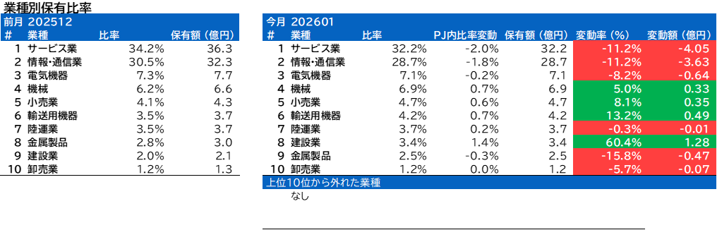 建設業の保有比率がPF内9位からPF内8位に上がり、業種指数の変動以上に大きく上昇しました。