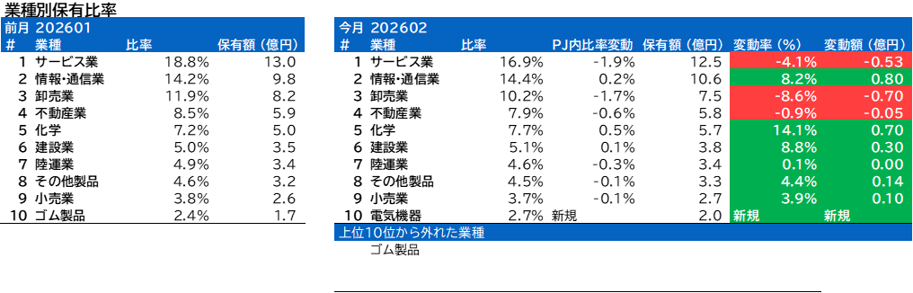 情報·通信業の保有比率はPF内2位で変わりませんでしたが業種指数の変動以上に大きく上昇しました。